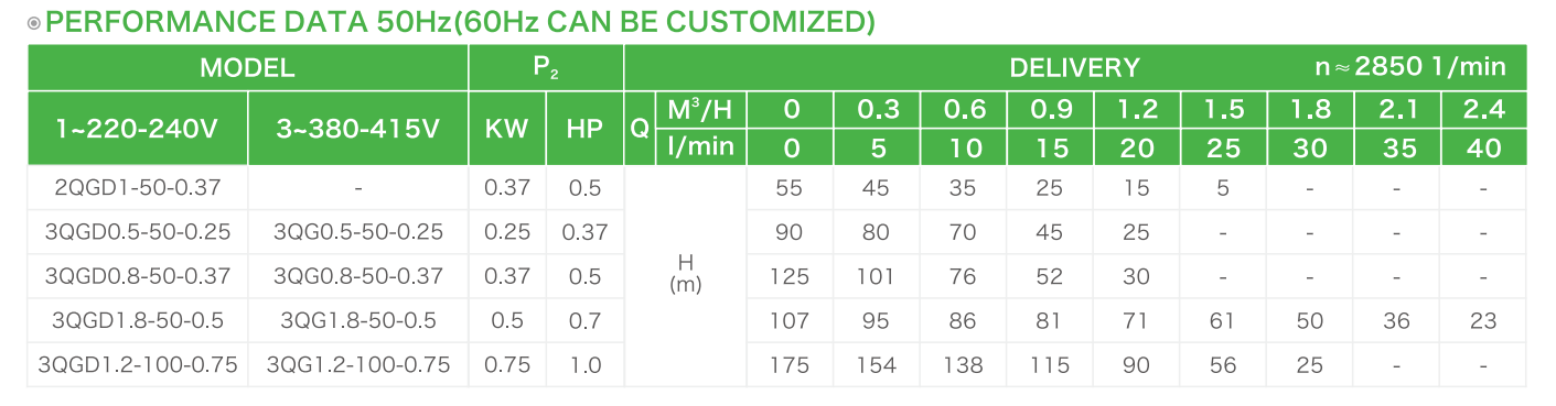 Minimum well diameter: 2" / 3"